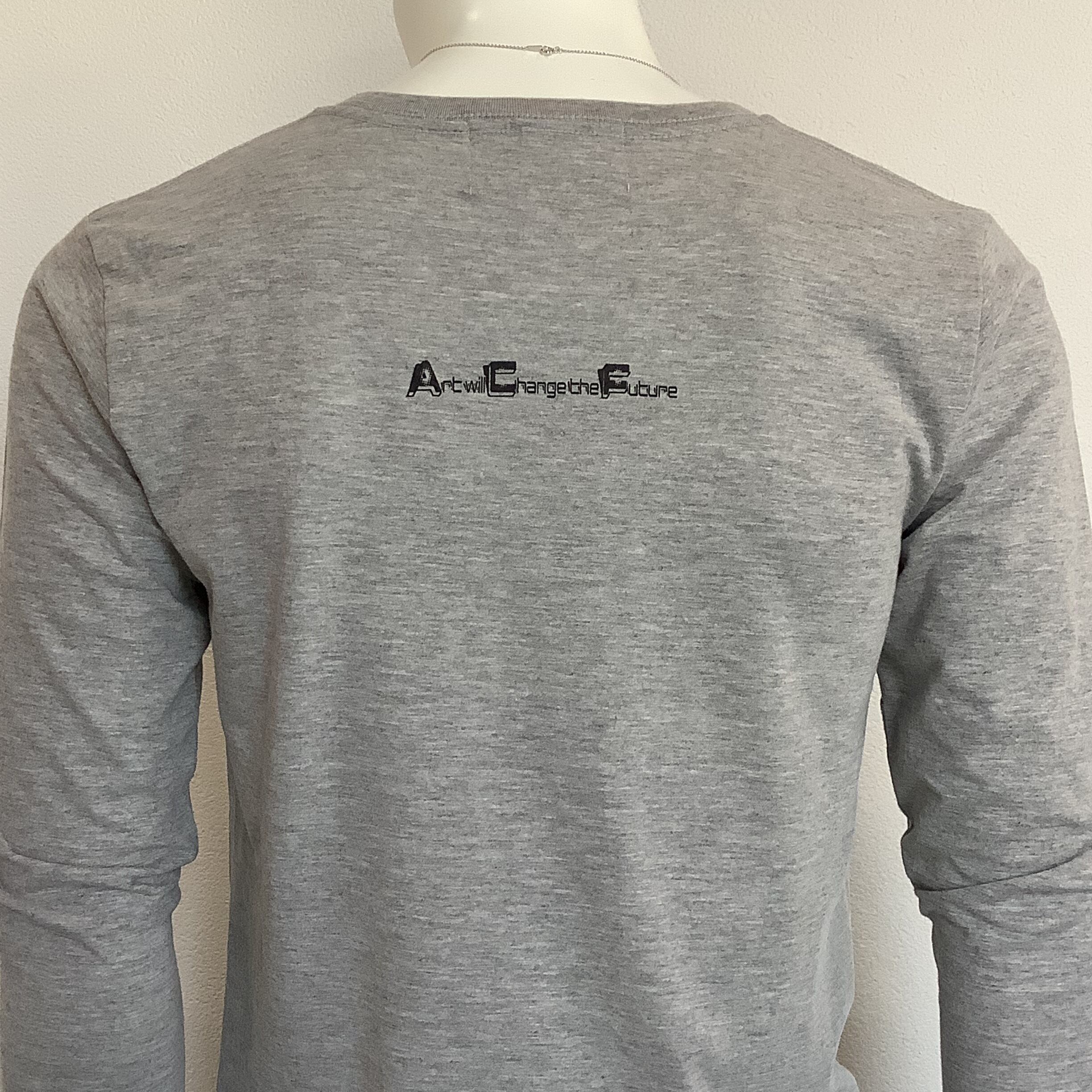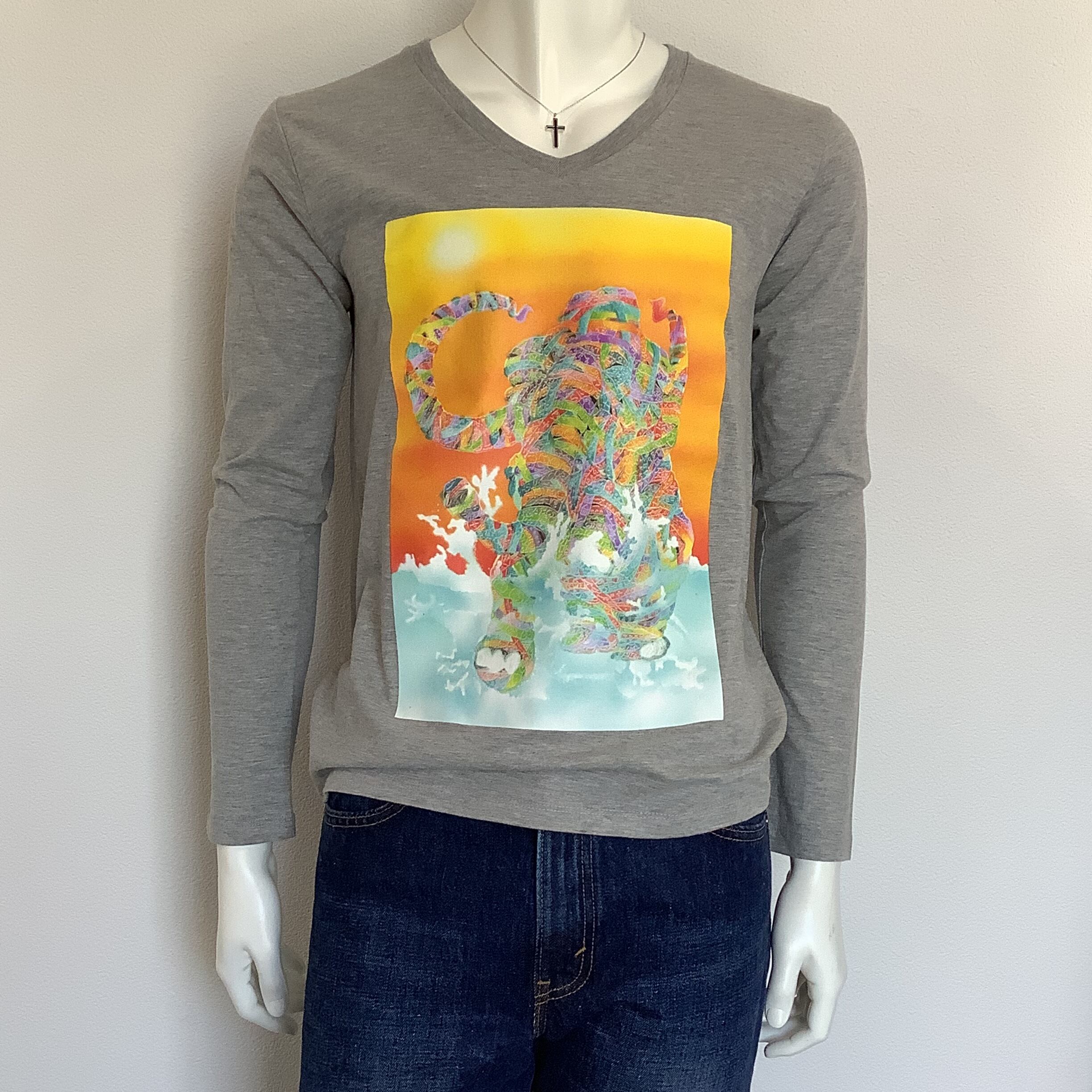 Vivid mammoth (マンモスの水浴び ) ロングTシャツ( Vネック ) ヘザーグレー