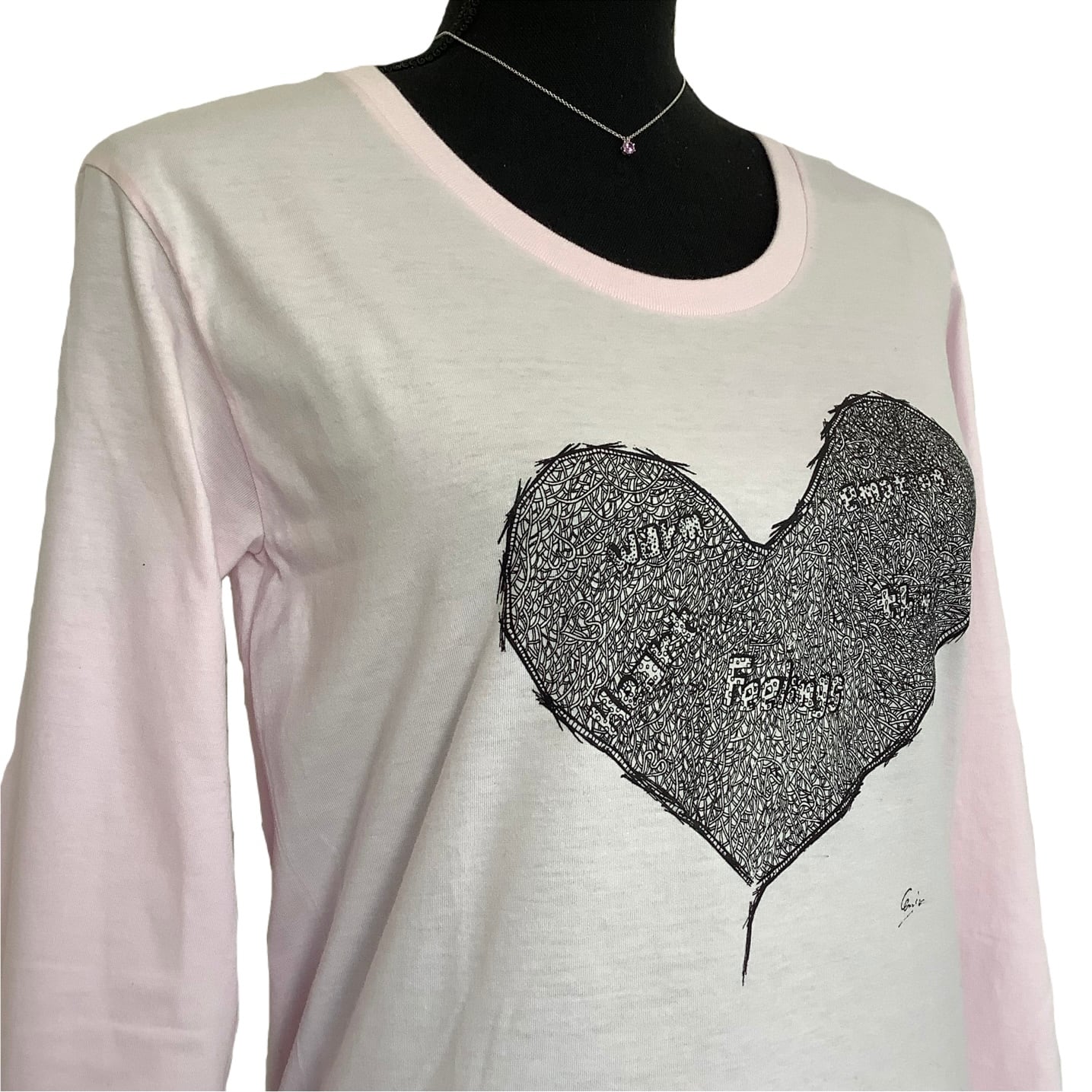 デザイン名 Emotion heart ( 感情ある心 ) 商品 UネックロングTシャツ カラー フロストピンク サイズ S, L 価格 5,900円( 税込 ) 素材 綿100% Sサイズ 身丈 65 身幅 46 肩幅 41 袖丈 60 Lサイズ 身丈 71 身幅 50 肩幅 44 袖丈 64