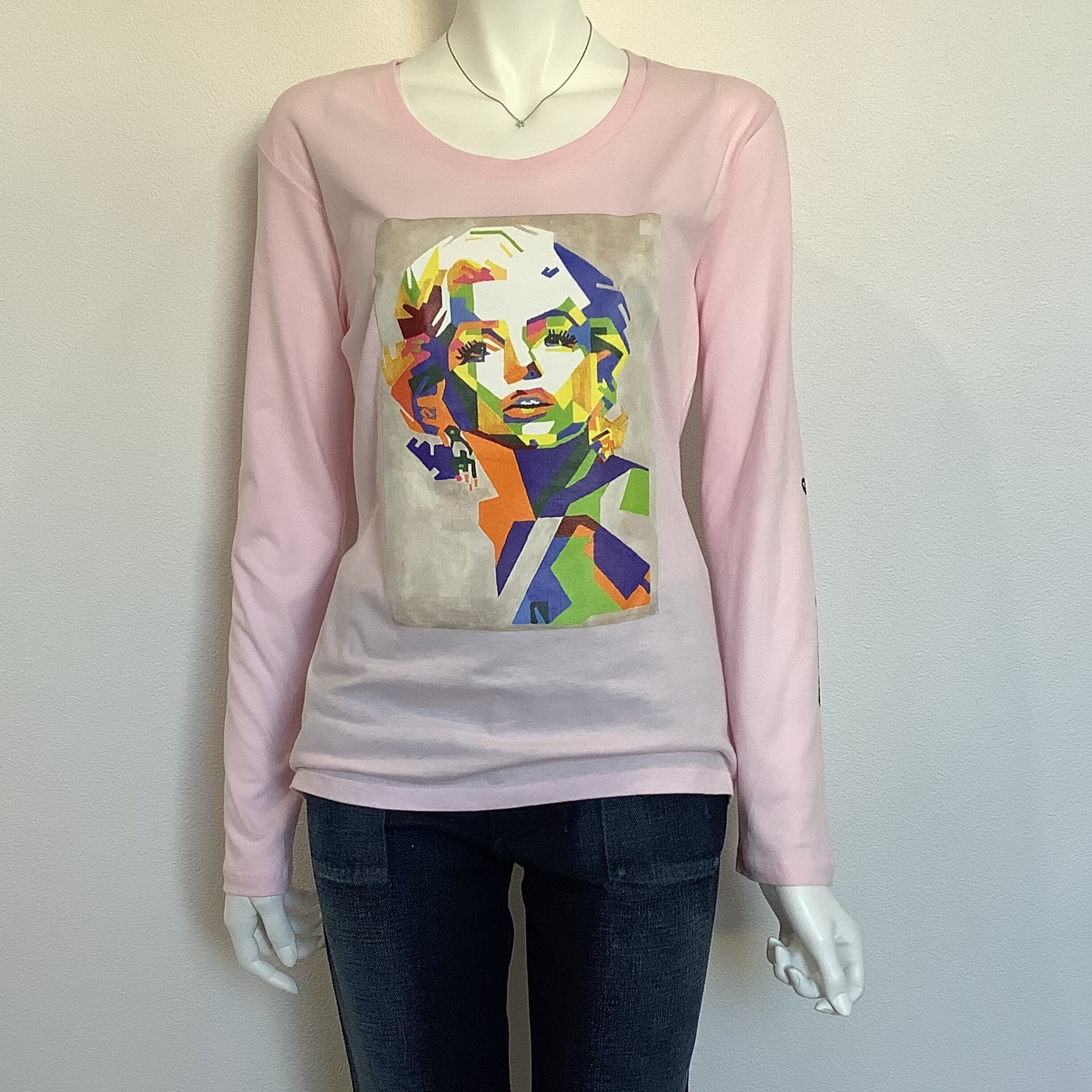 デザイン名 Vivid woman ( 鮮やかな女性 ) 商品 UネックロングTシャツ カラー フロストピンク サイズ S, L 価格 5,900円( 税込 ) 素材 綿100% Sサイズ 身丈 65 身幅 46 肩幅 41 袖丈 60 Lサイズ 身丈 71 身幅 50 肩幅 44 袖丈 64