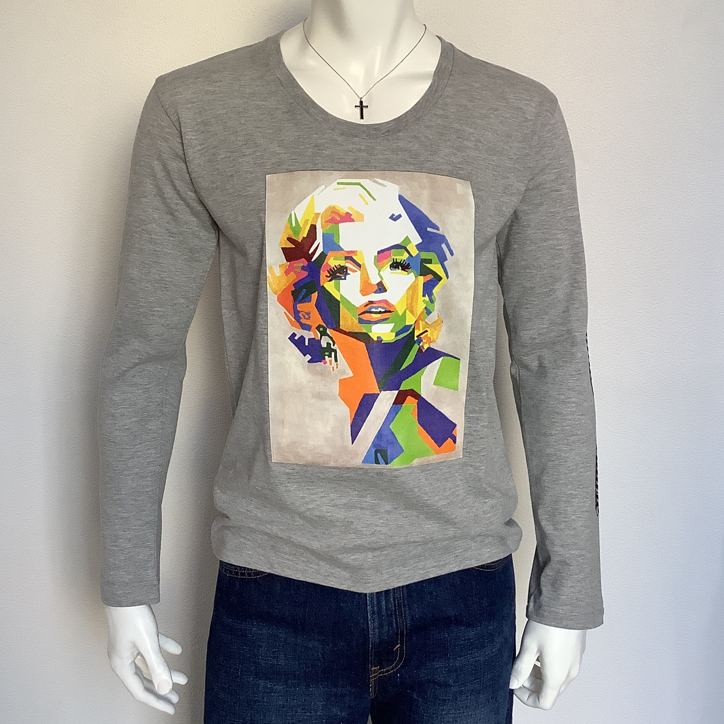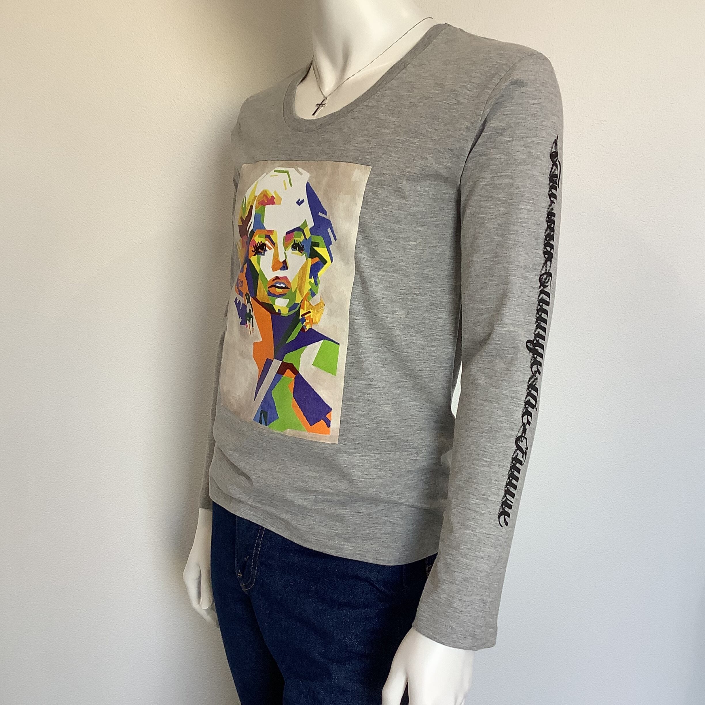 Vivid woman ( 鮮やかな女性 ) Uネック ロングTシャツ ヘザーグレー