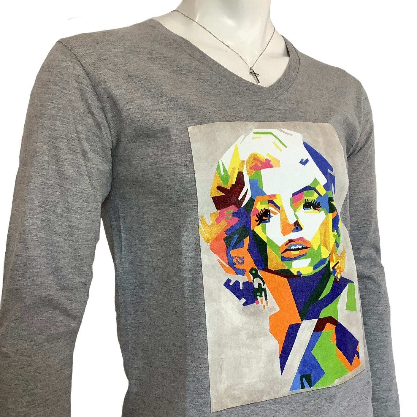 Vivid woman ( 鮮やかな女性 ) VネックロングTシャツ ヘザーグレー