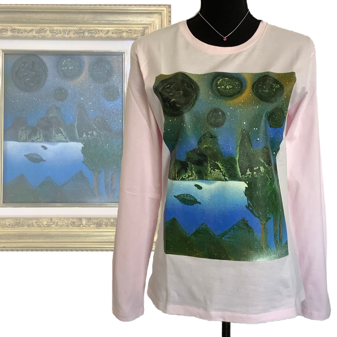 デザイン名 World of blue ( 深青の世界 ) 商品 ロングTシャツ カラー ピンク サイズ XS, S 価格 5,900円( 税込 ) 素材 綿100% 【サイズ詳細( cm )】 XSサイズ 身丈 61 身幅 42 肩幅 36 袖丈 59 Sサイズ 身丈 65 身幅 46 肩幅 41 袖丈 60