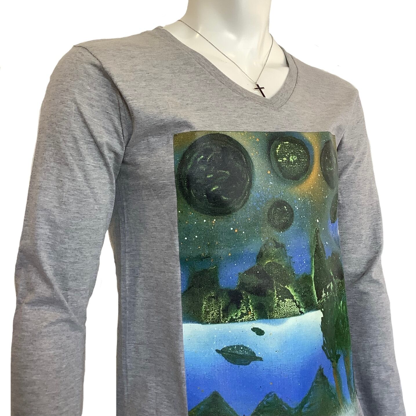 World of blue ( 深青の世界 ) VネックロングTシャツ ヘザーグレー